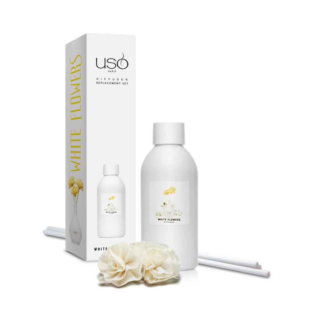 Cu acest set poți reînnoi parfumul, florile și bambusul odorizantului tău White Flowers Stick , pe care l-ai achiziționat anterior.